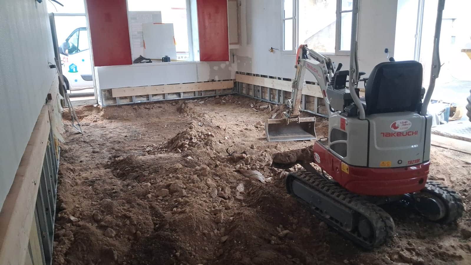 Avant le démarrage des travaux, une installation de chantier est réalisée avec clôture de chantier, balisage, signalisation, affichage réglementaire obligatoire d’accès au chantier et si besoin mise en place des bennes pour le tri sélectif des déchets.